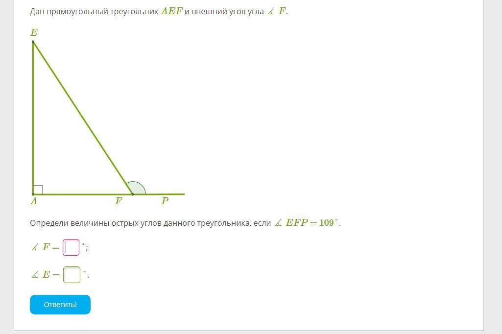 кут Е = 180⁰- 109⁰-71⁰= 19⁰