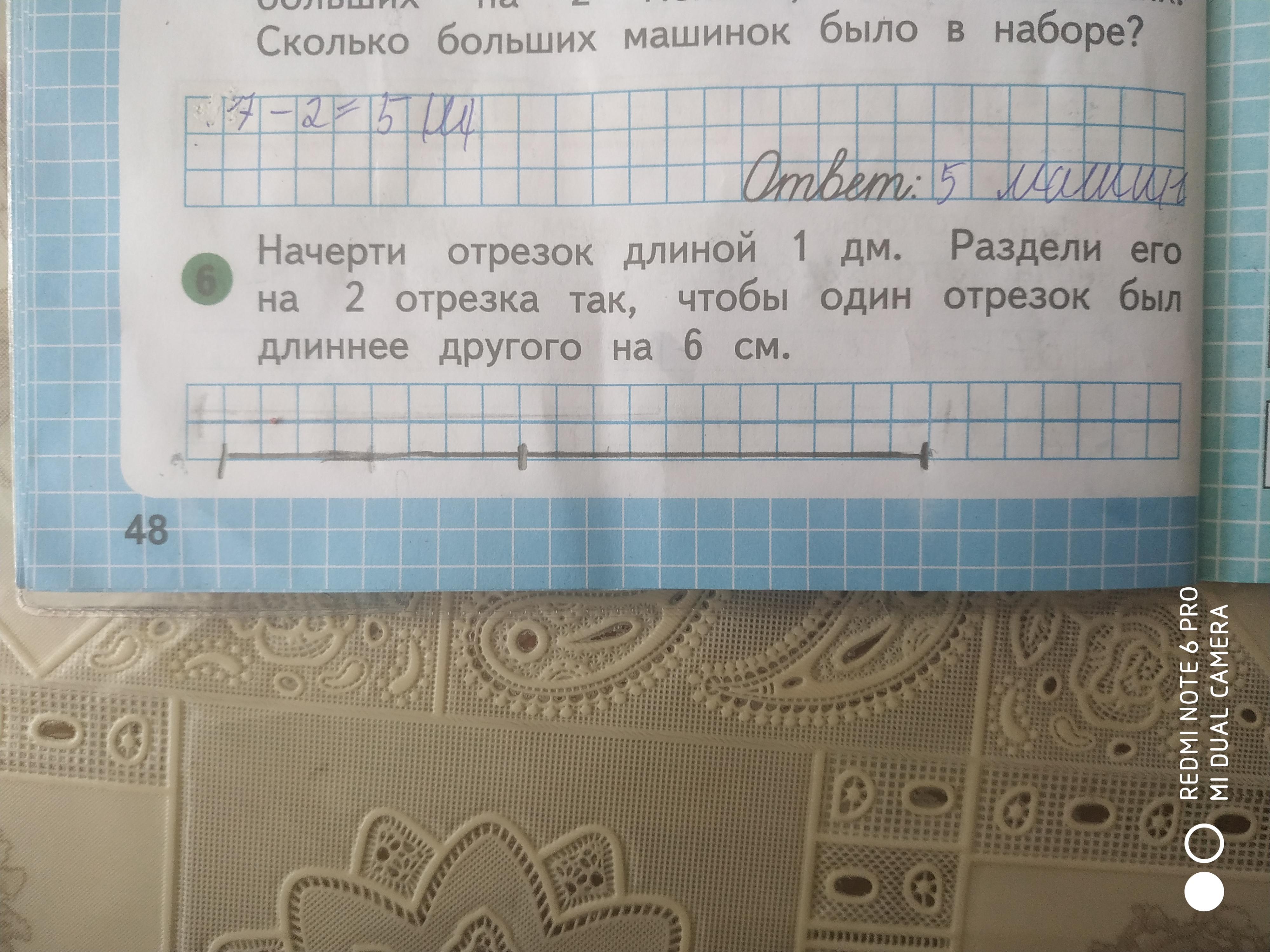 1 часть 6 см, 2 часть 4 см