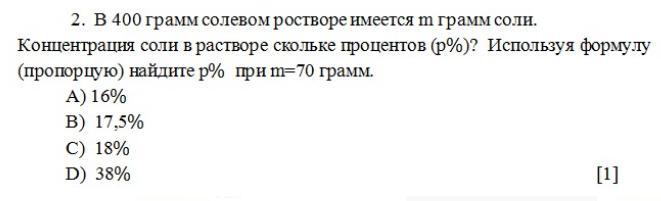 Концентрирация соли в растрове сколько процентов (p%)? Используя формулу (пропорцую) найдите p% при m=70 грамм