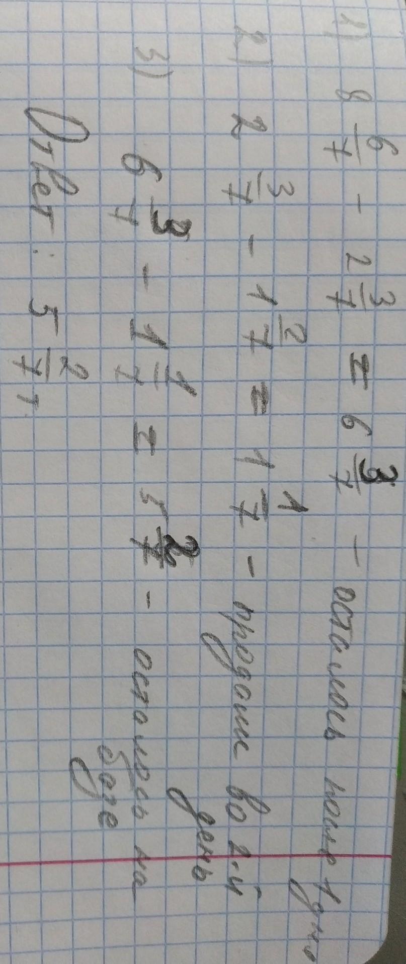на базе было 8 6/7 зерна в первый день продали 2 3/7 т зерна, во второй день на 1 2/7 меньше сколько зерна осталось на базе