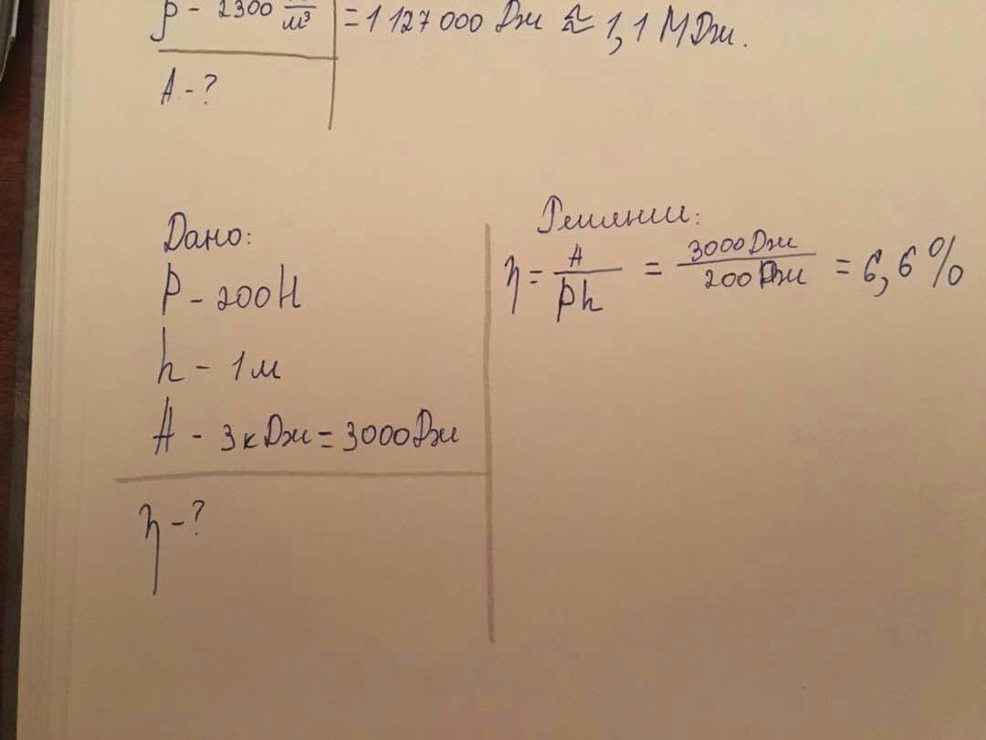 За допомогою важеля піднімають вантаж вагою 200 H на висоту 1м, при цьому сила, прикладена до другого плеча важеля, виконала роботу 3кДж.