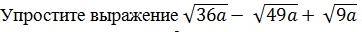 В подкорневых выражениях есть числа 36;49;9. Из них извлекаем корень.Получаем 6; 7;3 соответственно. Число "а" остается под корнем. Имеем (6 корней квадратных числа "а") -(7 корней квадратных числа "а")+3(корней квадратных числа "а")=2 корня квадратных числа "а"