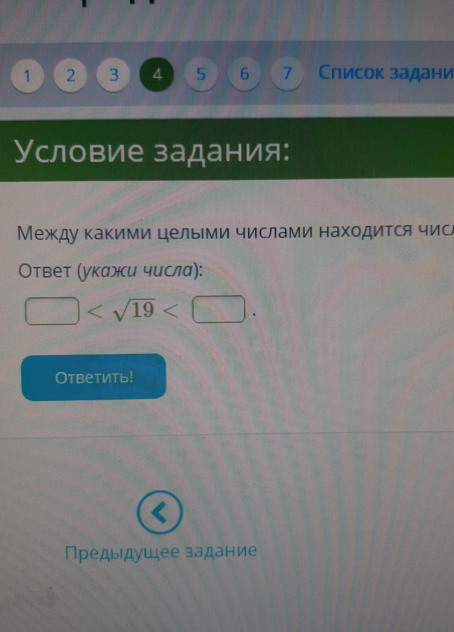 между какими целыми числами находится число 19?