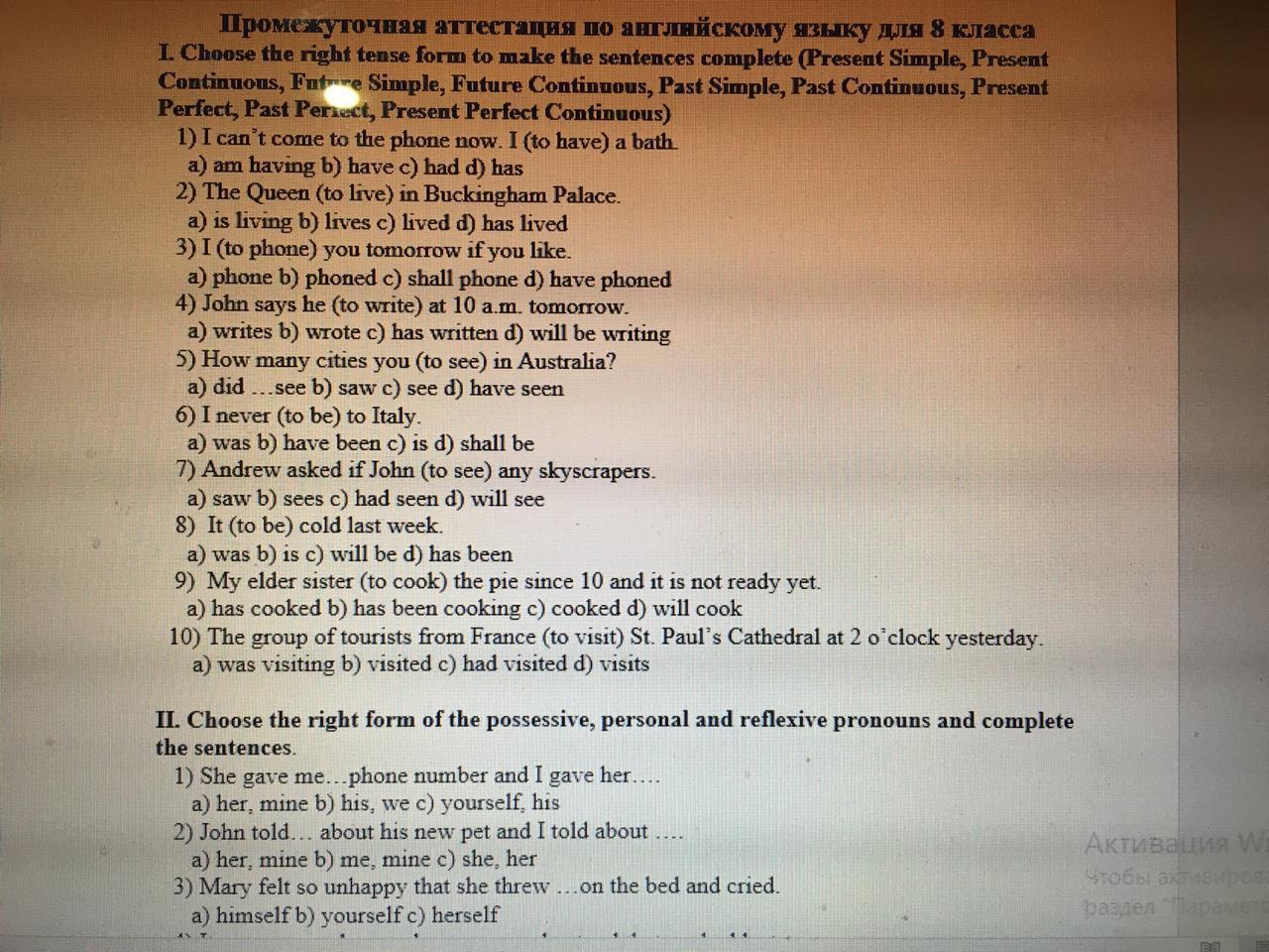 I. 1 a 2 b 3 c 4 d 6 d 6 b 7 c 8 a 9 b 10 b.