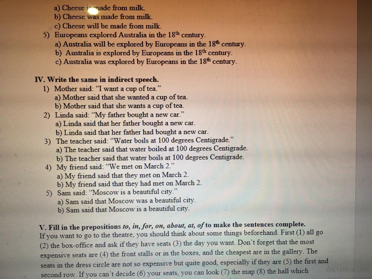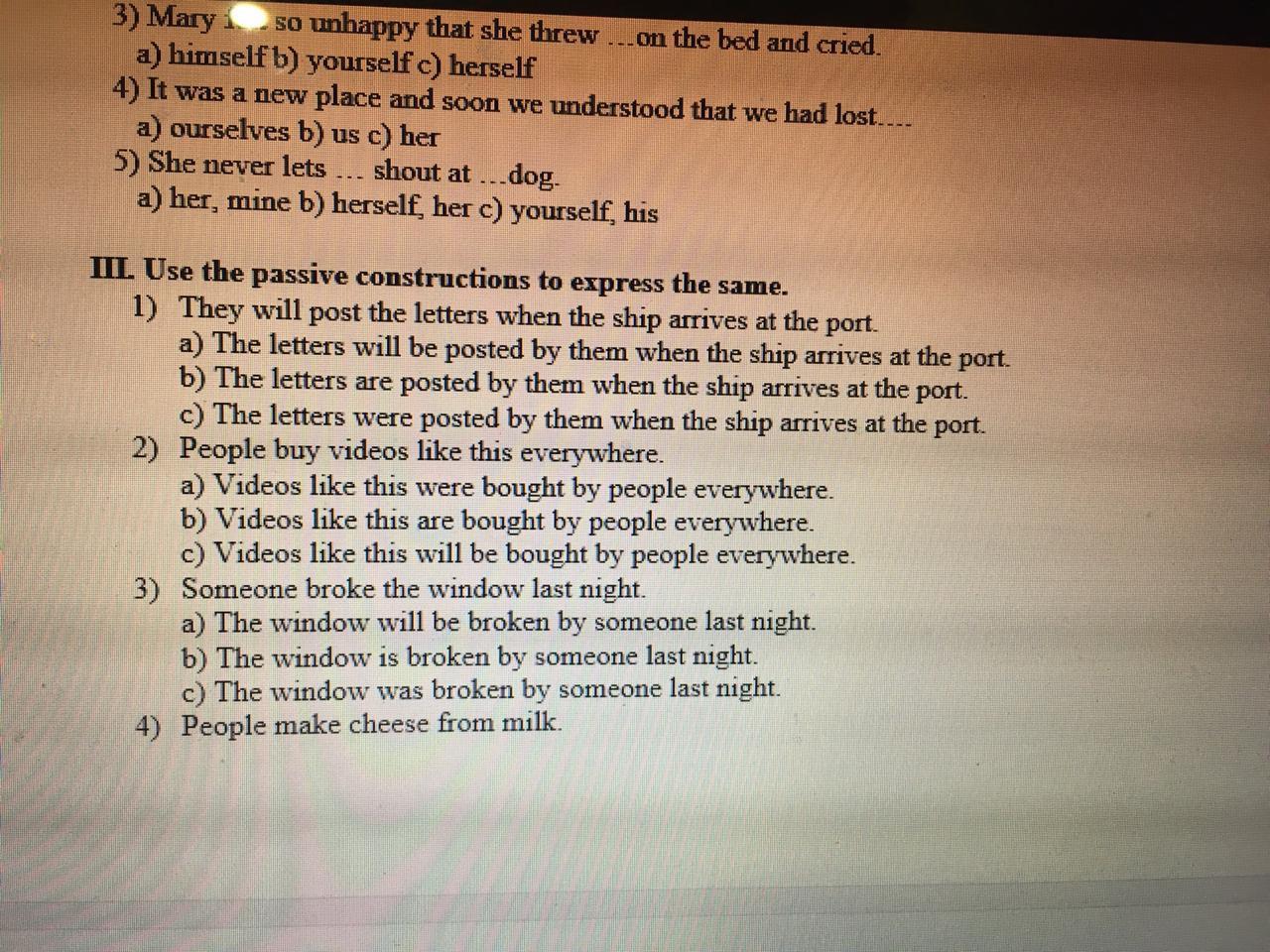 III. 1 a 2 b 3 c 4 Cheese is maked from milk by people