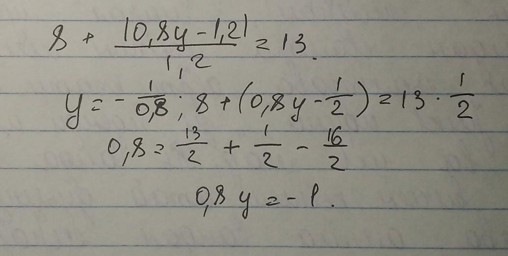 8*1,2 + 0,8у - 1,2 = 13 * 1,2