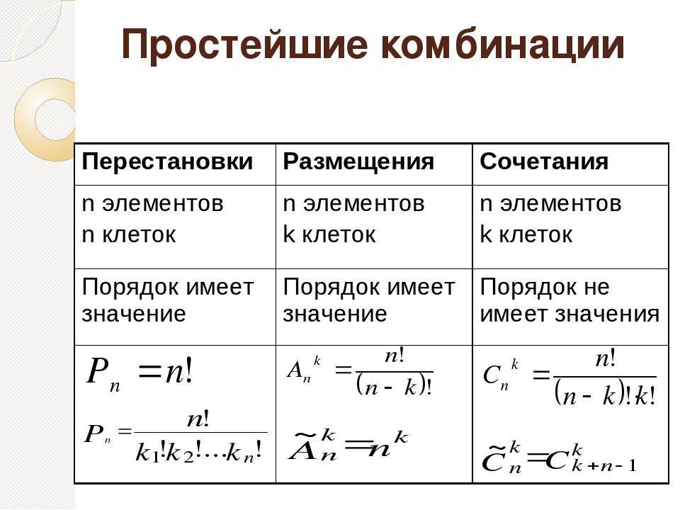 Что такое сочетание, размещение и перестановка? Алгебра