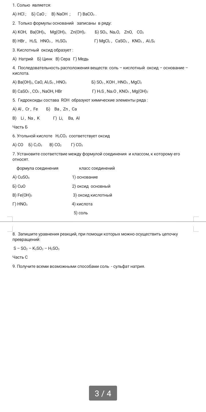 8. S ---> SO2 ----> K2SO3 -----> H2SO3