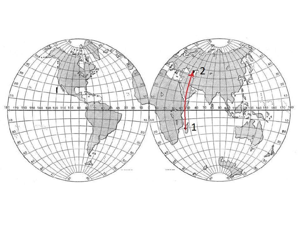 Точка 2 расположена от точки 1 в северном направлении.