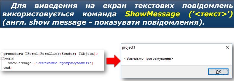 ShowMessage ('<текст>')