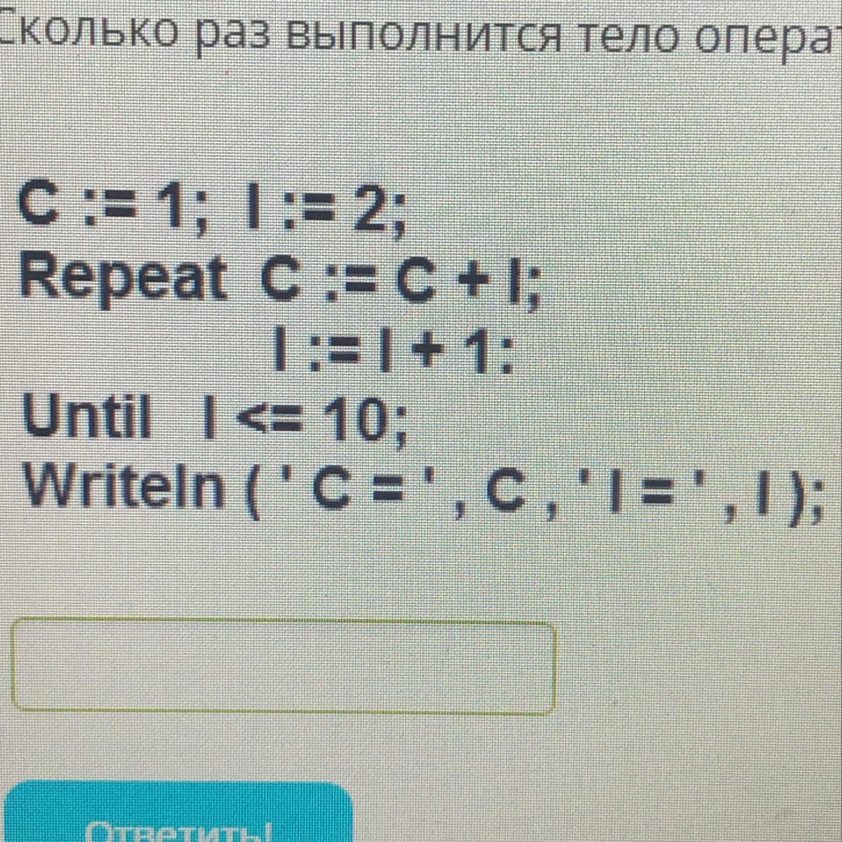 Получается тело оператора цикла выполниться 9 раз? Заранее большое спасибо!!!!