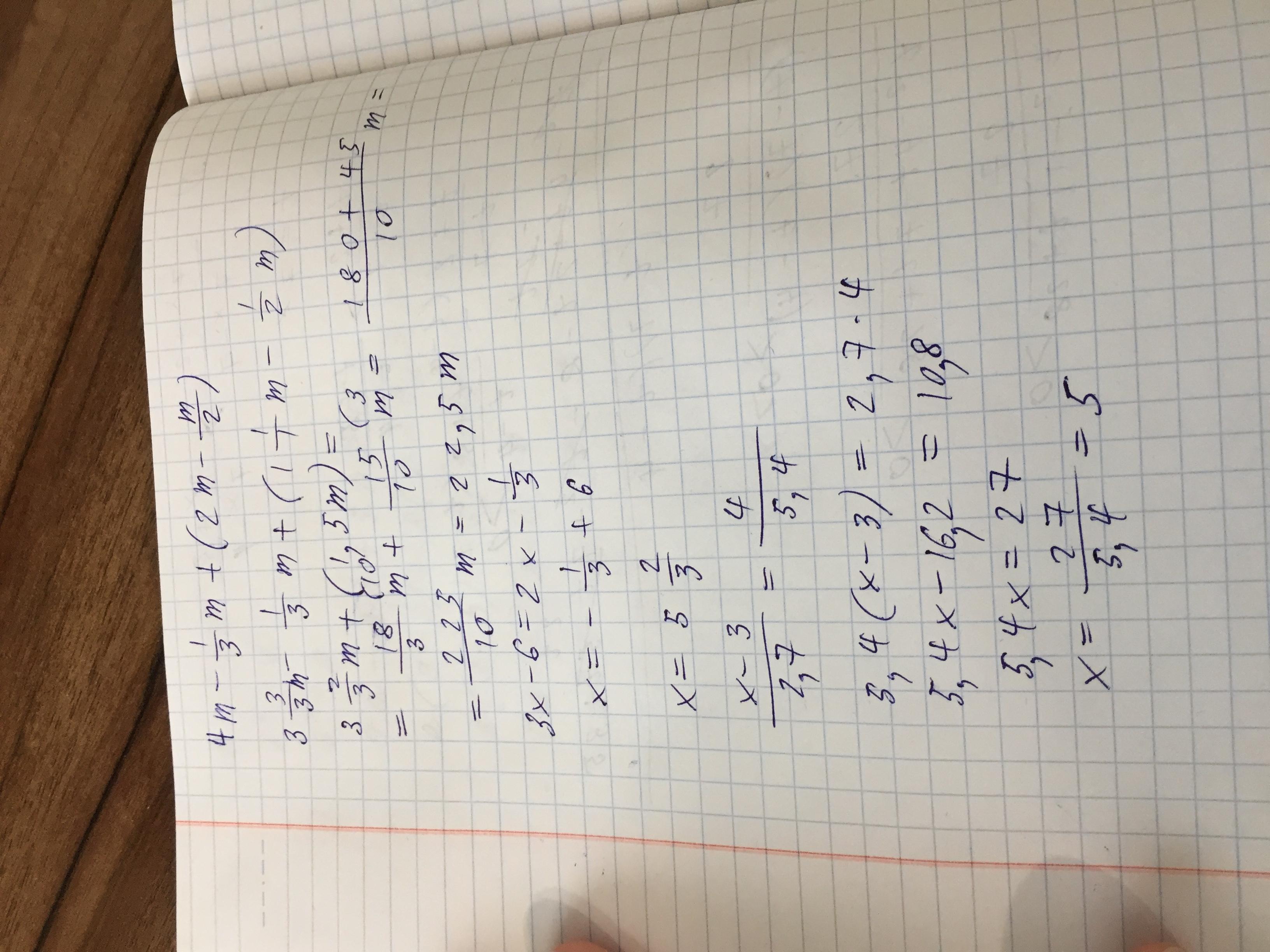 В 1 в виде дроби представить во втором перенести и знаки поменять в третьем можно переносом а можно как я но лучше перенести 5,4 вправо и сократить а в 4 вроде верно решил но ересь получилась.