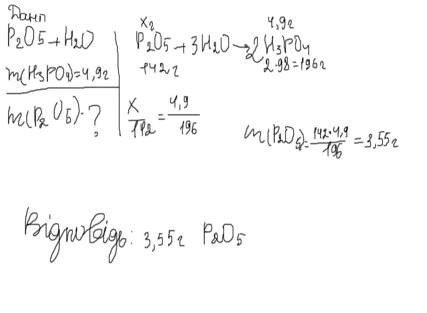 яка маса фосфор (v) оксиду прореагувала з водою якщо в результаті утворилося 4 ,9 г фосфатної кислоти