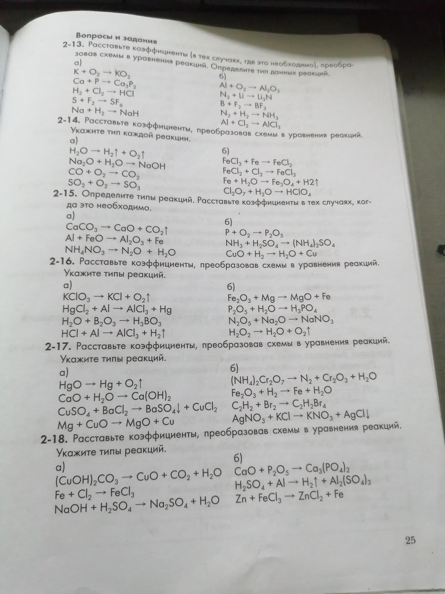 Ответ:2.16 а) 2KClO3 = 2KCl + 3O2 р-я разложения
