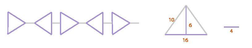 Прикраса «Срібний ланцюжок» складається з рівнобедрених трикутників, з’єднаних прямолінійними перетинками (розміри у міліметрах подано на малюнку). Якої довжини буде замкнений ланцюжок (кінці з’єднані) , який має 20 трикутників?