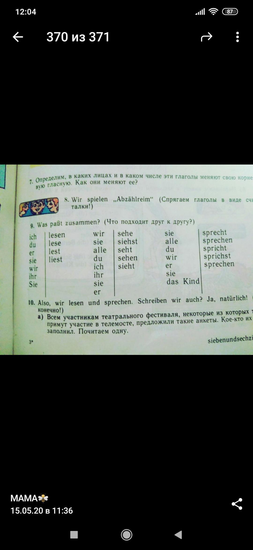 Ответ:ich lese, du liest, er/sie/es liest, ihr lest, wir lesen