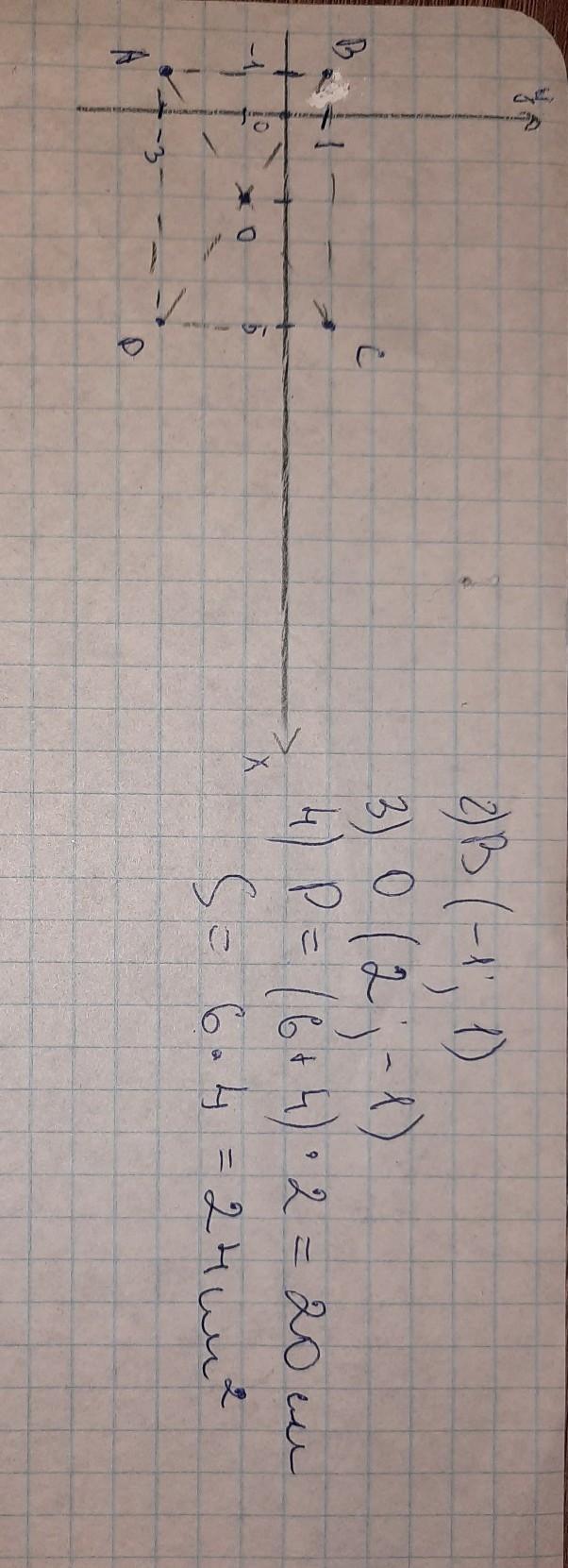 Даны координаты трех вершин прямоугольника ABCD: А (–1; –3), С (5; 1) и D (5; –3)
