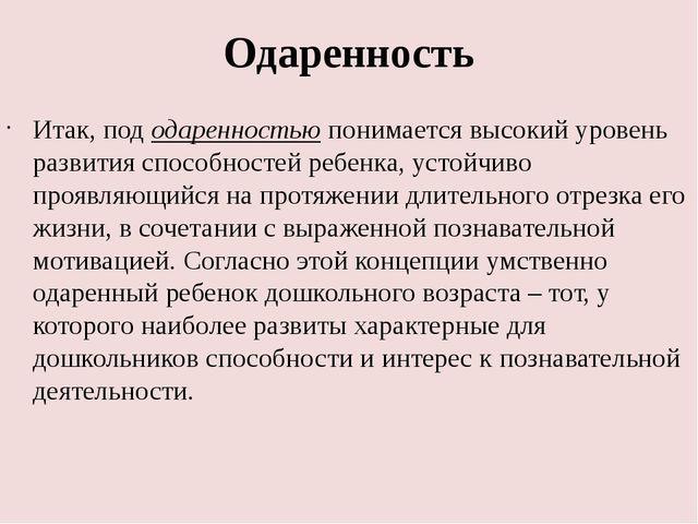 Если у человека способности проявляются в раннем возрасте, тогда говорят об одарённости. Одарённость тоже обеспечивает не заведомо запрограммированный успех в какой-либо деятельности, а только возможность достижения этого успеха. Одарённость может быть специальной, т. е. одарённостью к одному виду деятельности, и общей – одарённостью к разным видам деятельности. Часто общая одарённость сочетается со специальной. Многие выдающиеся художники писали музыку, сочиняли стихи и т. д.