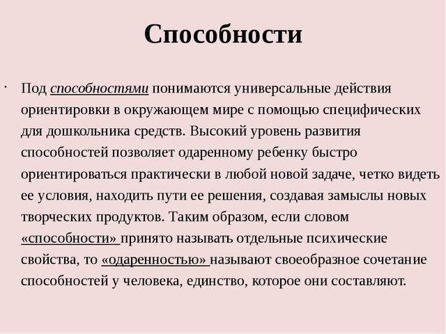 Сравните понятия способность и одаренность