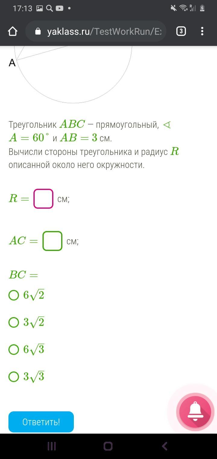 AB это катет стоящий перед ∠C=30° равен половину гипотенуза
