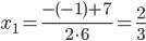 D=(-1)2 - 4·6·(-2)=49