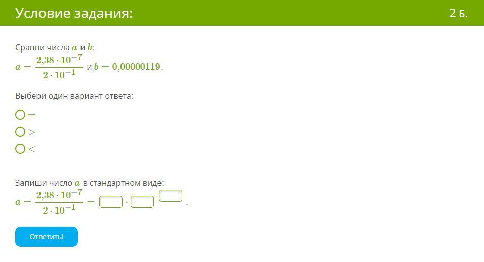Стандартний вигляд числа це його запис у виді а * 10^n, де 1 < a < 10, n∈Z