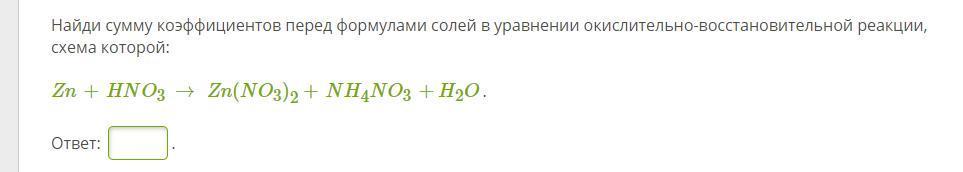 Найди сумму коэффициентов перед формулами солей в уравнении окислительно-восстановительной реакции, схема которой: