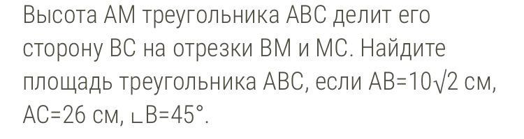 MC=√AC²-AM²=√26²-10²=√676-100=√576=24 см