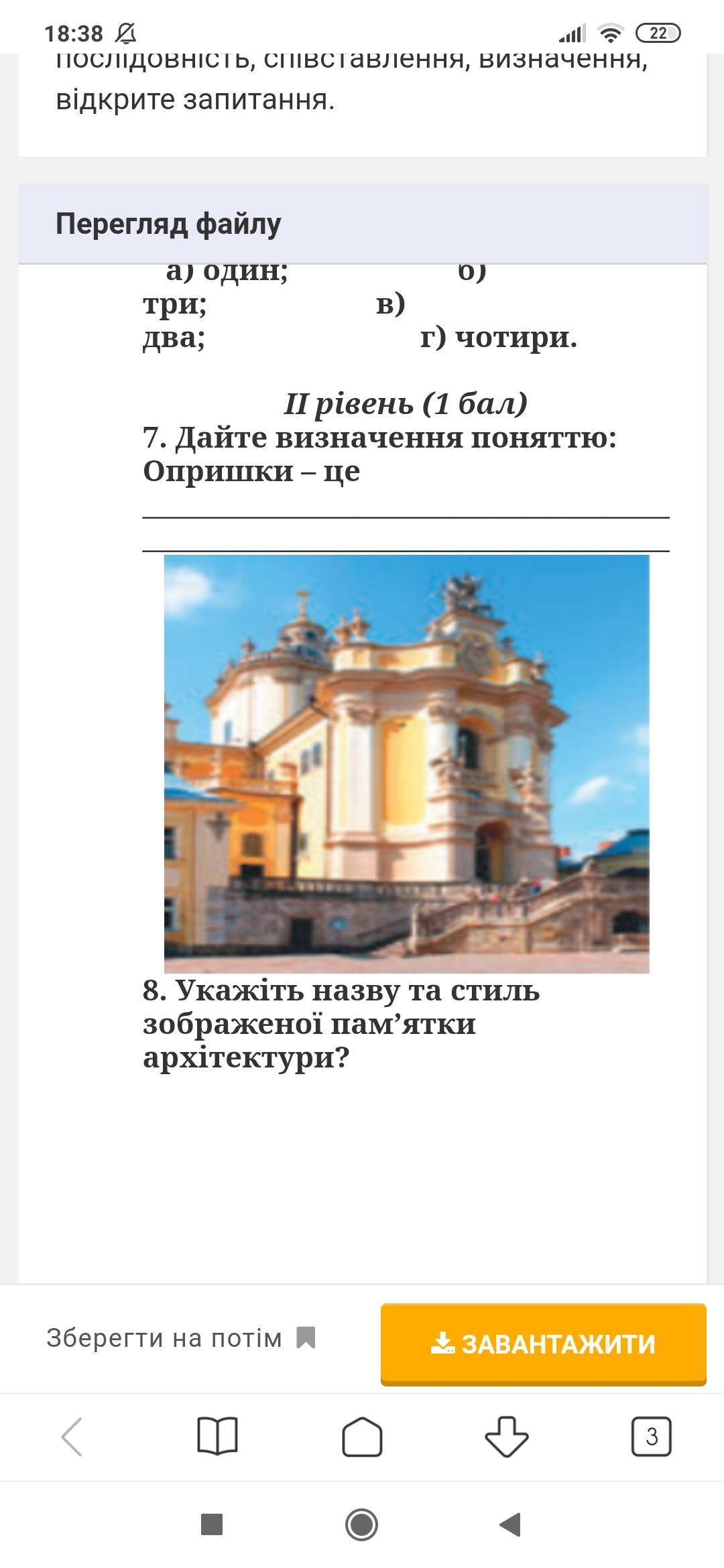 История Украины.Срочно,помогите.Не пропускайте мое задание.Пол книжки прочитал и не увидел ответ.Задание номер 8.Хоть в интернете найдите, все равно.100% что здание 17-18 ст.