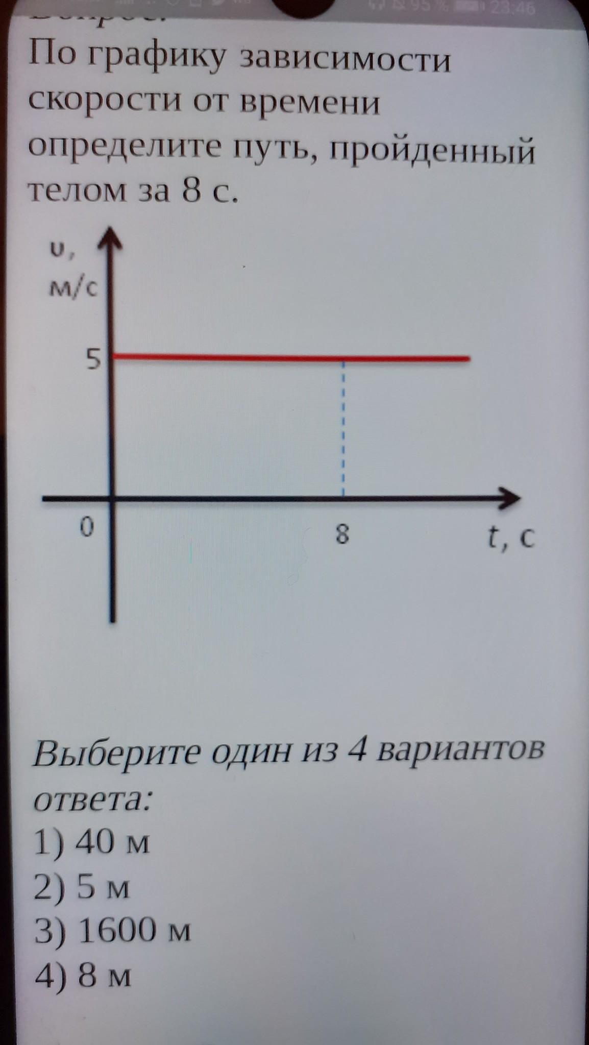 Цифра 1, потому что за 1 секунду тело проходит 5 метров, значит за 8 секунд тело пройдет (8*5) = 40 м