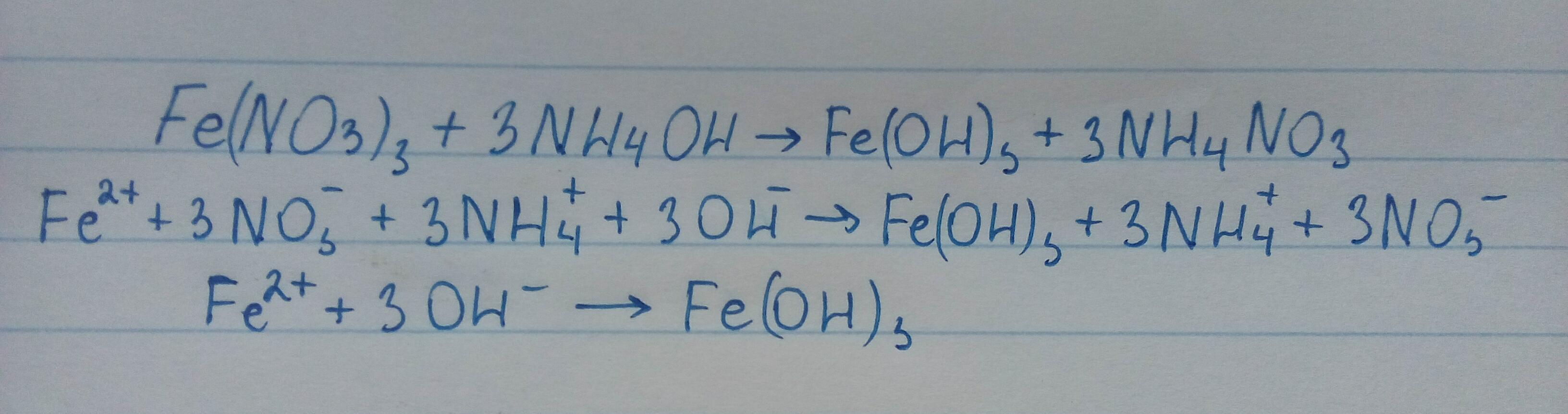 Запишите уравнение реакции водного раствора аммиака с нитратом железа (III), составьте его в полном и кратком ионном виде. Это очень срочно!!!
