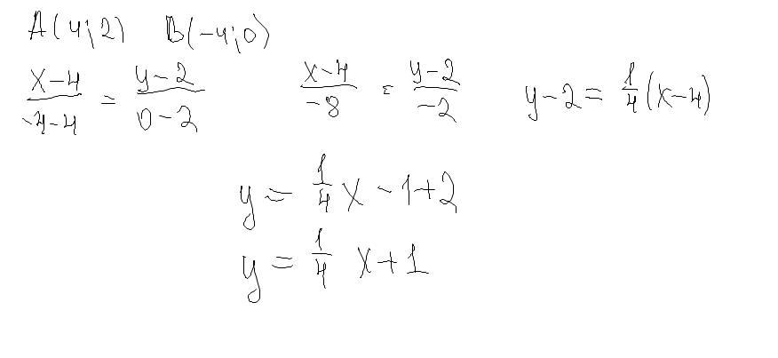 Прямая y=kx+b проходит через точки А(4;2) и В(-4;0). Напишите уравнение этой прямой.