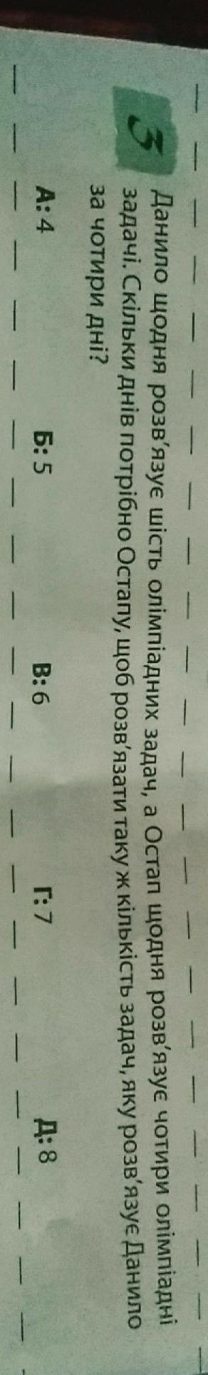 2) 24 : 4 = 6 - днів потрібно Остапу, щоб розв'язати таку ж кількість задач, які розв'язуж Данило за 4 дні