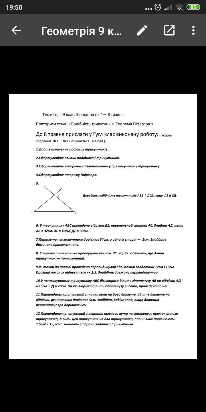 5. Эти треугольники подобны по двум сторонам и углу между ними. AE является продолжением DE, BE является продолжением CE и центральные углы равны т.к. вертикальные.