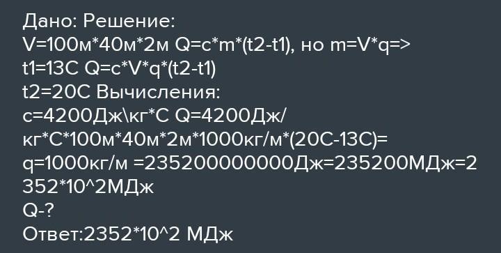 V=100м*40м*2м Q=c*m*(t2-t1), но m=V*q=>
