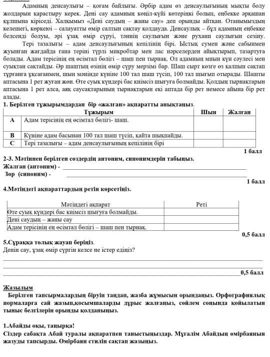 5. Мен деним сау болу ушин саллауатты омир салтын жургизер едим