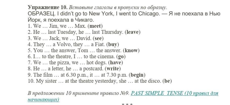 10. My sister didn't be at the theatre yesterday, she were at the disco.