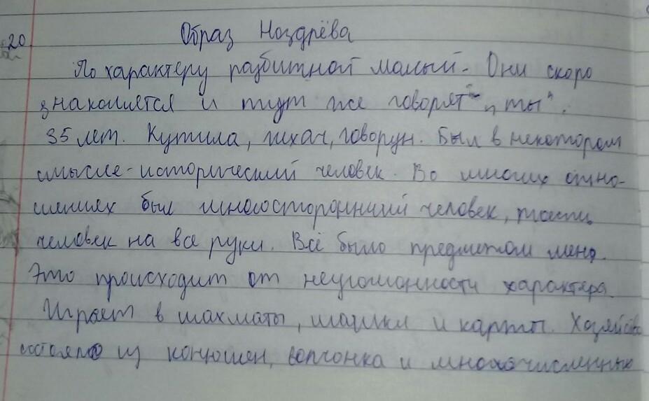 "... Лицо Ноздрева, верно, уже сколько-нибудь знакомо читателю. Таких людей приходилось всякому встречать немало. Они называются разбитными малыми, слывут еще в детстве и в школе за хороших товарищей и при всем том бывают весьма больно поколачиваемы.