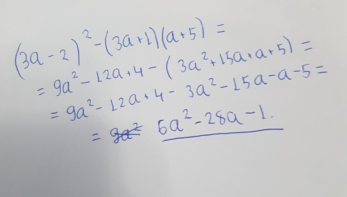 (За - 2)^2 - (За + 1)(а + 5).