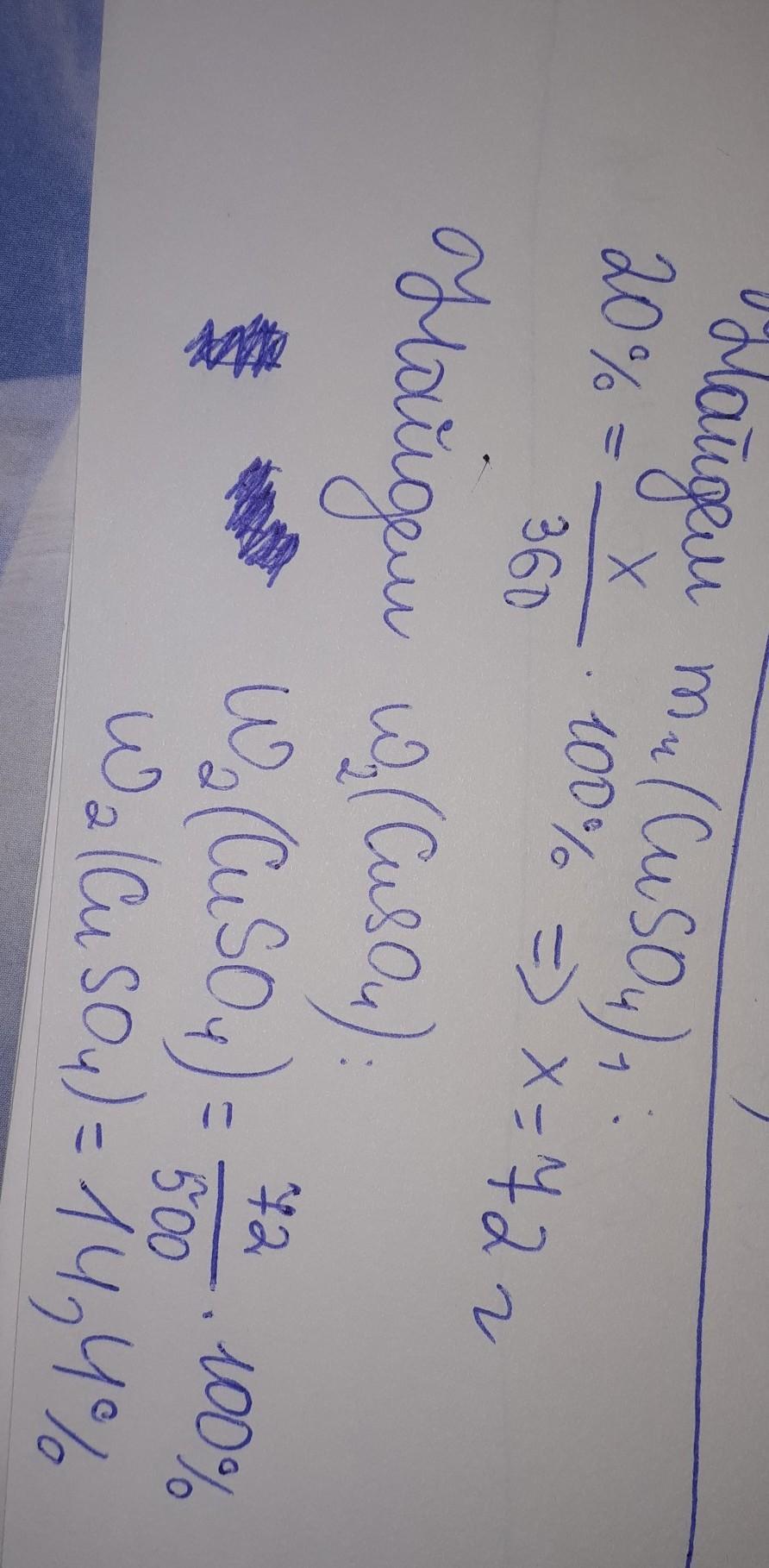 Какова массовая доля (%) вещества в растворе, полученном при добавлении к раствору сульфата меди массой 360 г с массой