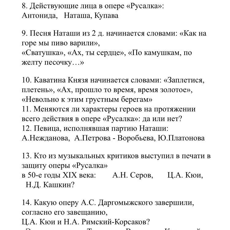 14)Какую оперу А.СДаргомыжского завершили, согласно его завещанию Ц.А.Кюи и Н.А.Вимский Корсаков:»Эсмеральда», «Торжество Вакха», «Камменый гость»