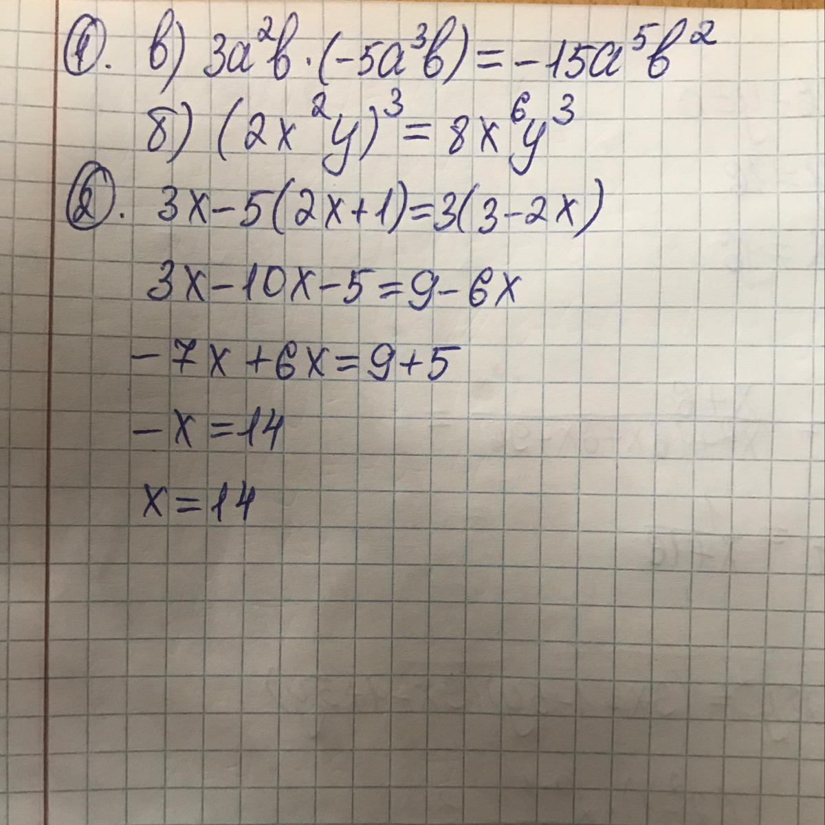 Под в) в 1 задании, там же (-5а^3b). Плохо видно.