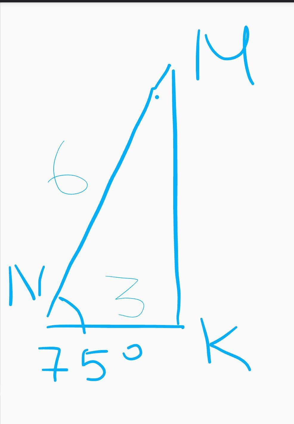 2. с помощью транспортира от точки N отложи угол в 75° сделай отметку (точку поставь, например);