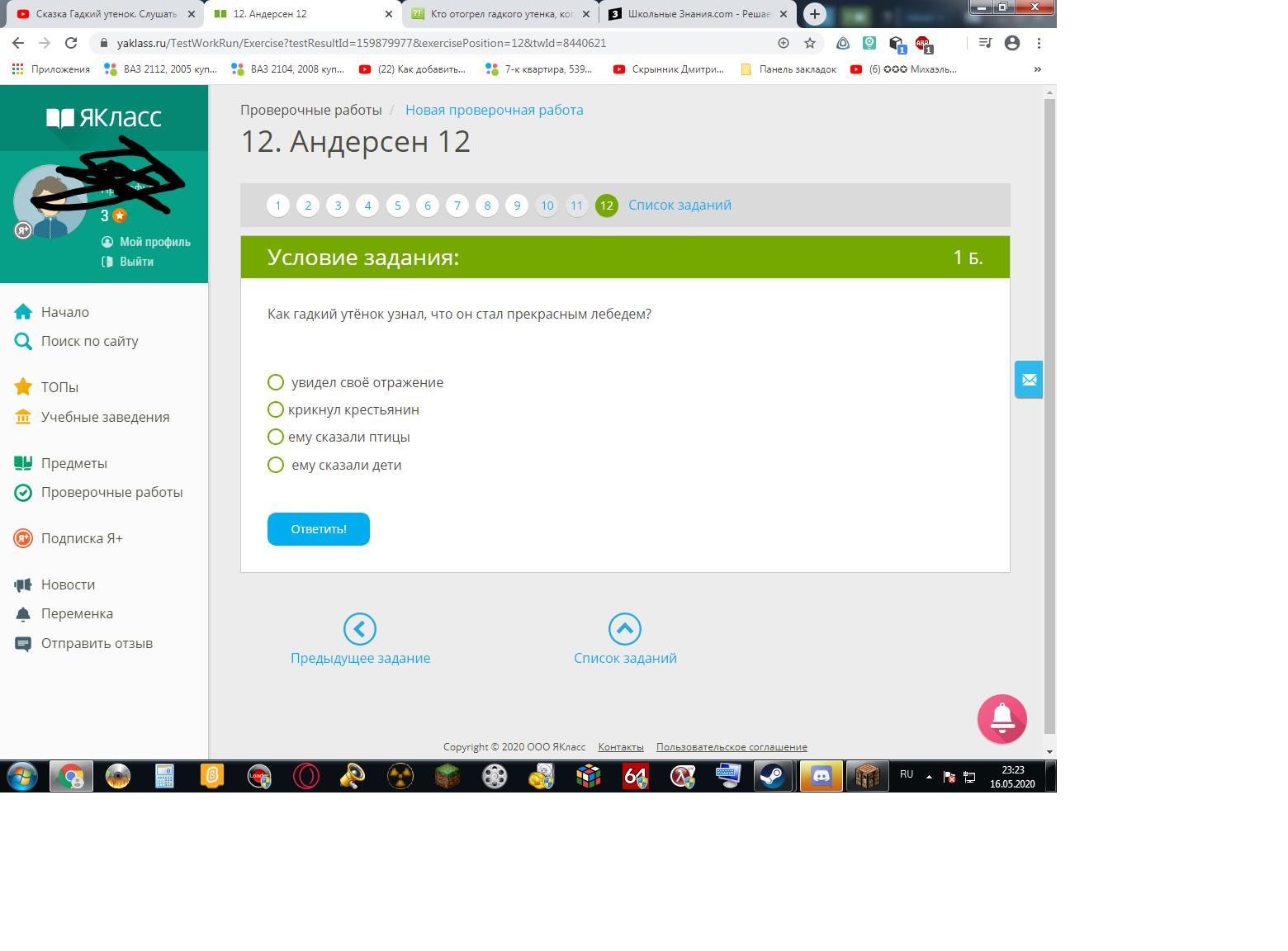 3. увидел свое отражение