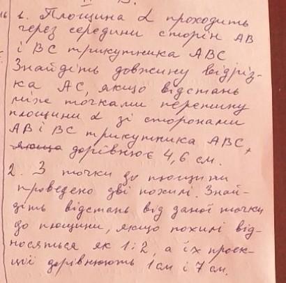 Відповідь: 1) 9,2 см, 2) |/15 см