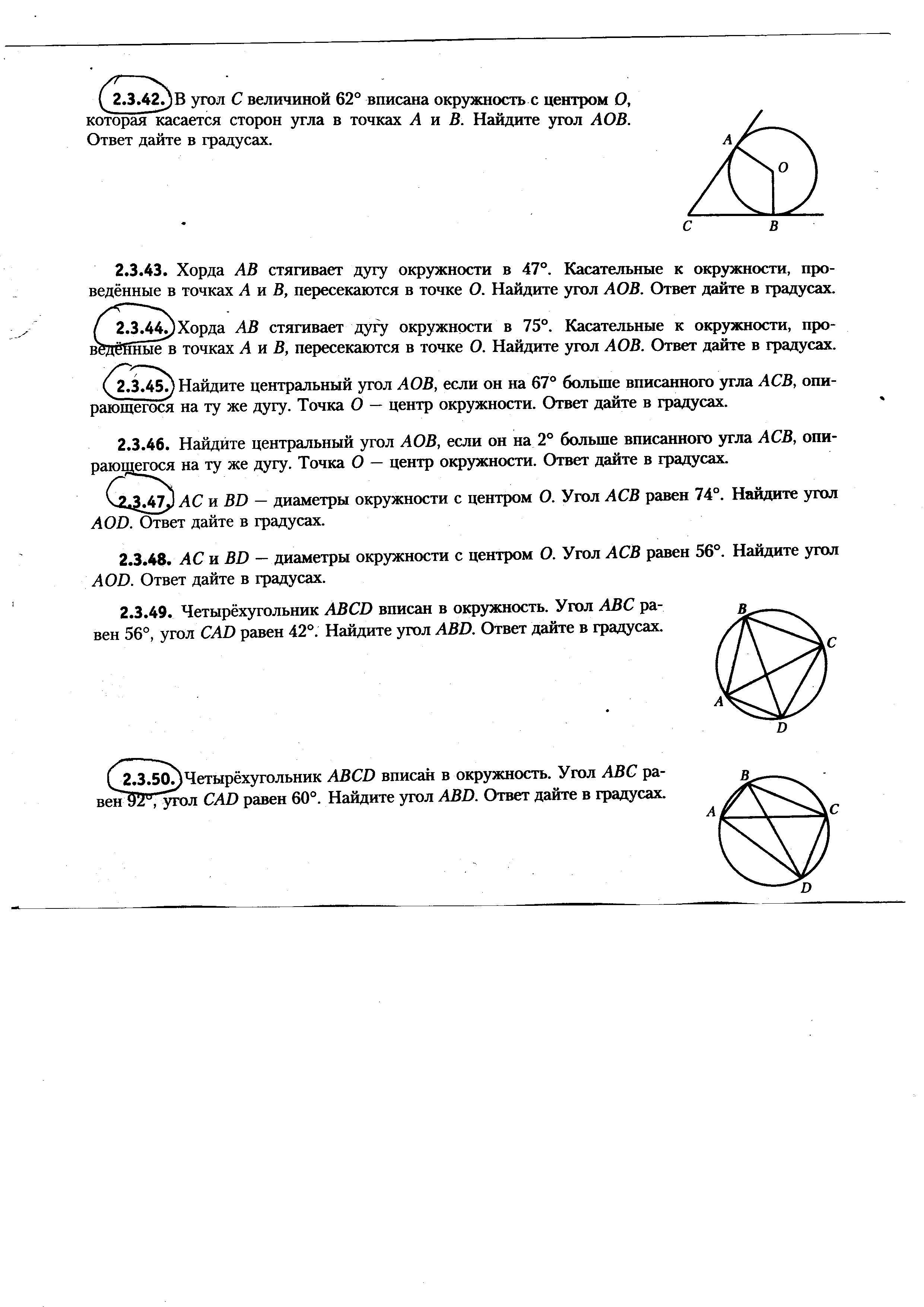 Найдите центральный угол АОВ, если он на 2° 60льше вписанного угла АСВ, опи-