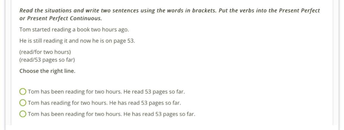 Tom has been reading for two hours. He has read 53 pages so far.