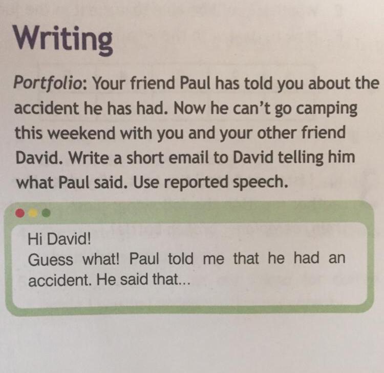 Guess that! Paul told me that he had an accident. He told me that he can't come to the camping this weekend with us and his friends. I am really sad that he can't come and have fun. Why don't we go and see him after the camping? Or let's send him videos and picture while we are there. Maybe we can do video call? What do you think? See you at the camp