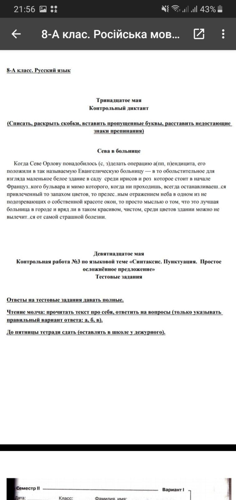 Когда Севе Орлову понадобилось сделать операцию аппендицита ,его положили в так называемую Евангелическую больницу-в то обольстительное для взгяда маленькое белое здание,в саду среди ирисов и роз ,которое стоит в начале Французского бульвара ,и мимо которого ,когда ни проходишь,всегда останавливаешься привлеченный то запахом цветов ,то прелестным отражением неба,в одном из не подозревающих о собственной красоте окон,то просто мыслью о том ,что это лучшая больница в городе,И вряд ли в таком красивом ,чистом,среди цветов здании, можно не вылечиться от самой страшной болезни.