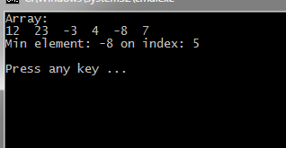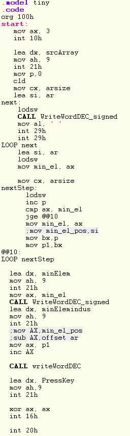 Написать программу на ассемблере. В массиве из восьми элементов найти минимальный элемент